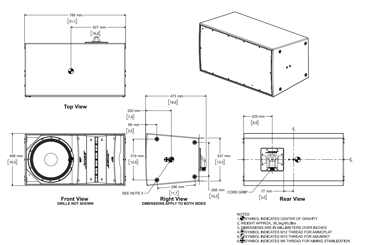 ●采用 14 英寸釹磁低音單元和 6 個 Bose EMB2S 鈦膜釹磁壓縮單元,可提供高聲壓級,可長距離傳輸?shù)囊魳分胤藕腿寺暻逦?nbsp;