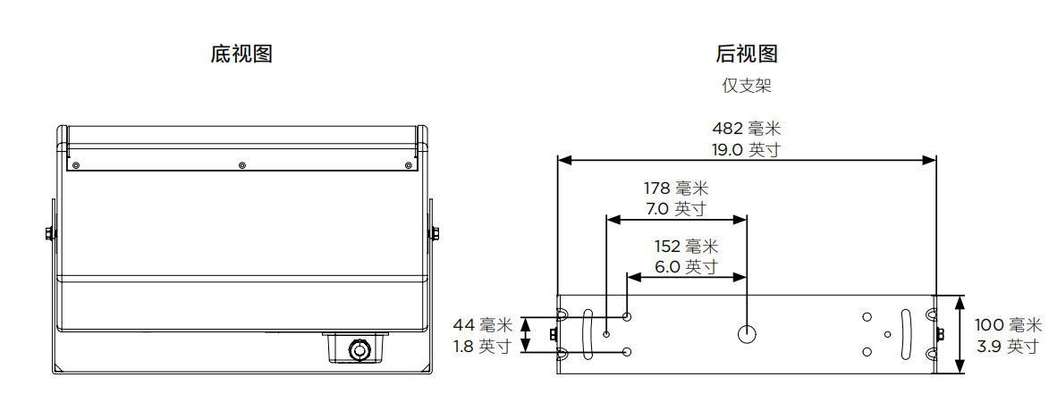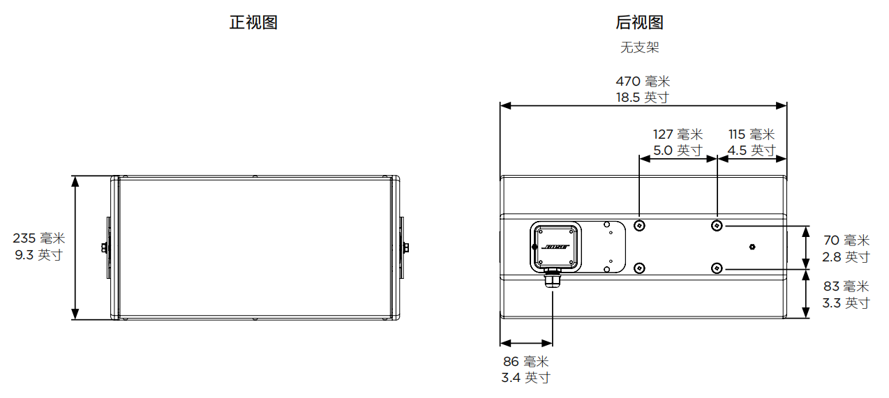 ●隨附的不銹鋼 U 型支架讓安裝輕松方便;箱體后面板還包括 M8 螺紋插件,可接受第三方安裝支架配件。