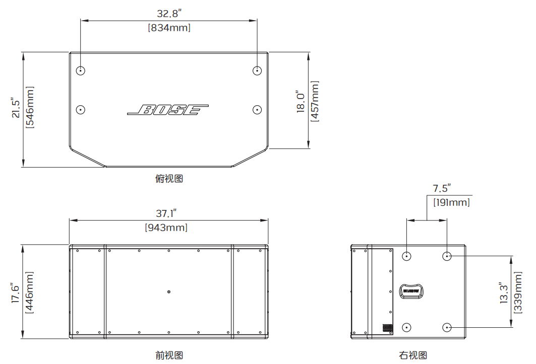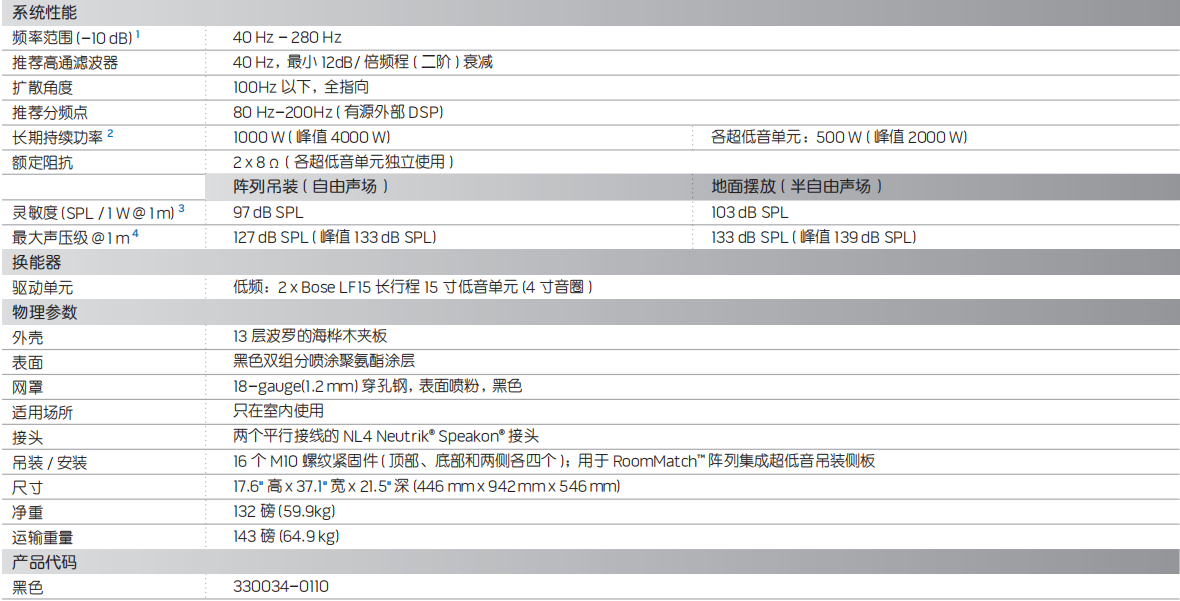 ? 用于 Bose RoomMatch? 陣列模塊揚聲器的超低音揚聲器