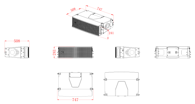 RL0.5 是一款線陣列揚聲系統(tǒng),與RL0.5SUB超低音箱配套使用,適用于各式活動中心、體育館、劇院、會館、DISCO PUB及巡回流動演出。它可以在地面堆疊擺放或以任何方向吊裝??蓡为毜跹b,也可吊裝在兩個機柜的線陣列中。箱體采用模組化設(shè)計,中高音形成模組高音采用3寸金屬振膜,線性的高頻平面波發(fā)聲器,高頻遠程投射能強、具穿透力,配合高效能2*8寸低音單元,具有極佳的遠程投射力度和傳真度,將深深的打動著你。箱體由高密度樺木板制成,正面配有堅硬的鐵網(wǎng)、黑色PCP(聚脲柜保護)漆飾面,具有抗沖擊和防風雨的保護作用。單元采用一個高精度金屬材料加上金屬件支撐在箱體的中間,以使箱體得到可靠的保護。配套可水平及垂直多角度安裝的吊架,也具備可單點支撐及懸掛的吊具。背面的連接面板為嵌入式,并配有Speakon NL8-MP連接器。